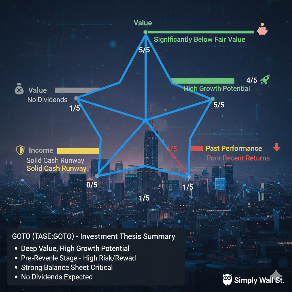 For an investment firm like Simply Wall St, the Snowflake Analysis is the single best visual representation—the “best picture”—that encapsulates the entire investment thesis of Goto (TASE:GOTO).