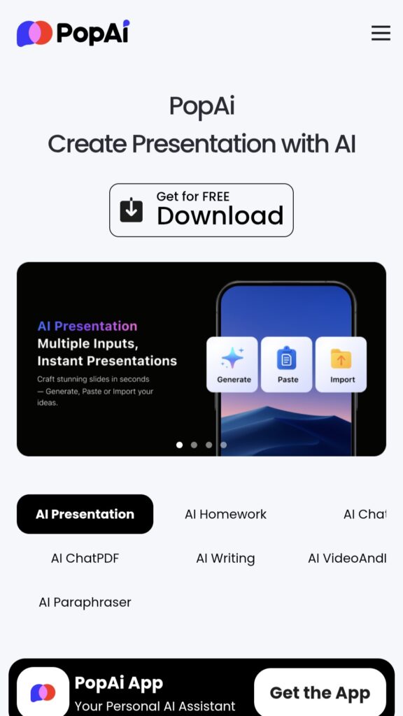 PopAi positions itself as an intelligent office workstation that integrates AI-driven content generation with dynamic visual presentation capabilities. Designed to streamline the creation of documents, presentations, and other content formats, PopAi seeks to redefine how individuals and teams approach everyday knowledge work. This review evaluates the concept, strengths, potential limitations, and the broader value it delivers in a rapidly evolving digital productivity landscape.
